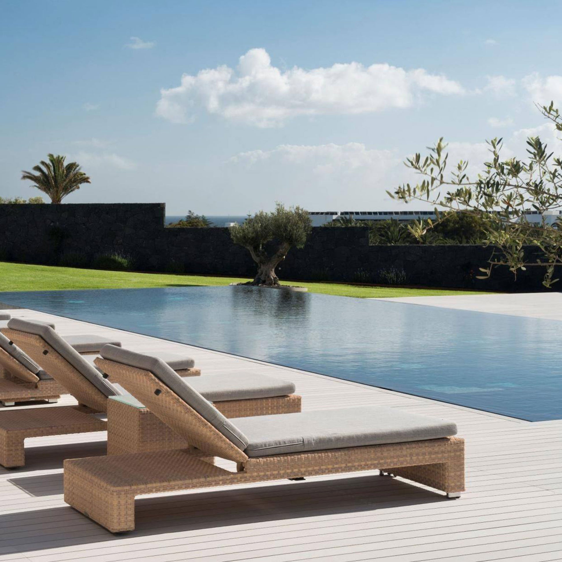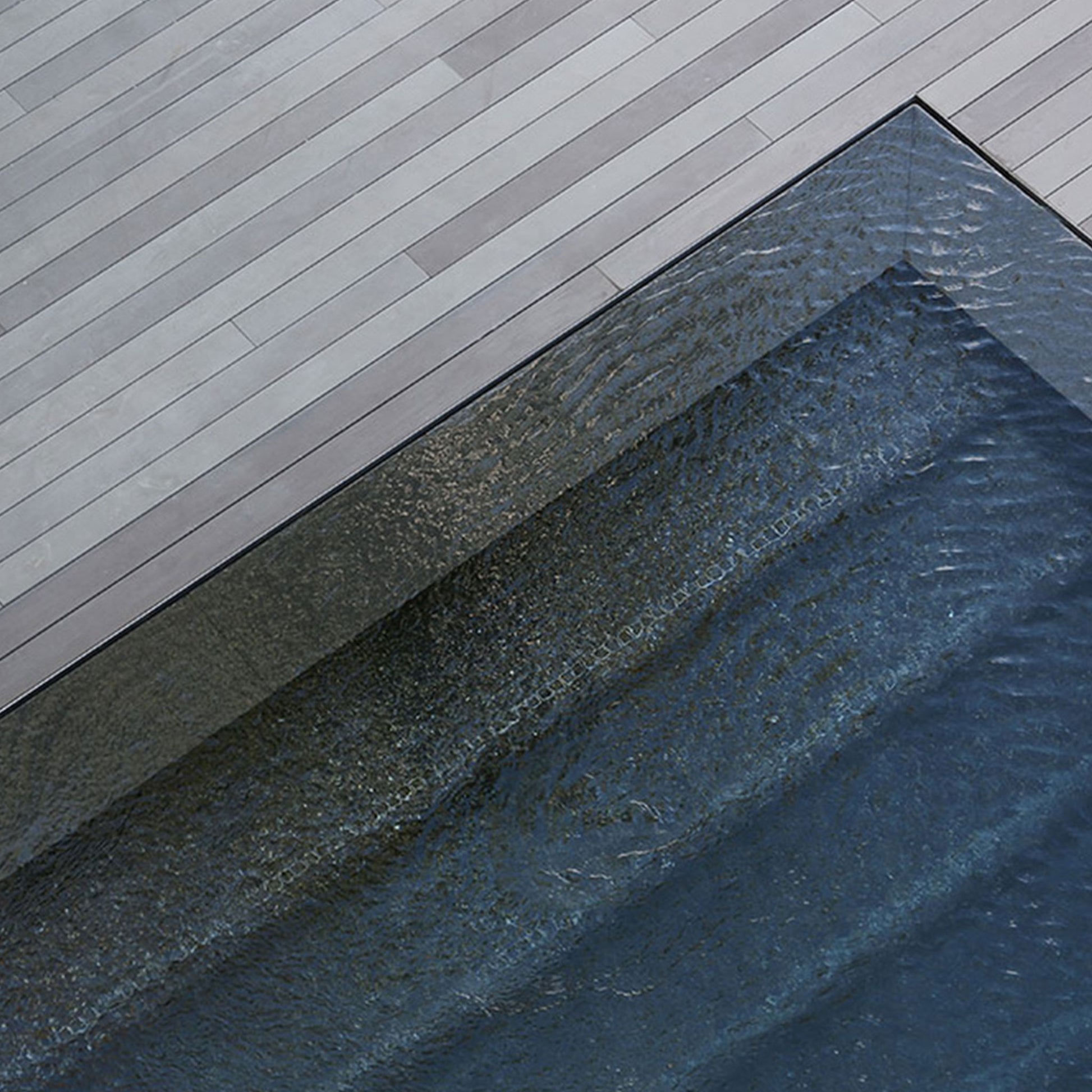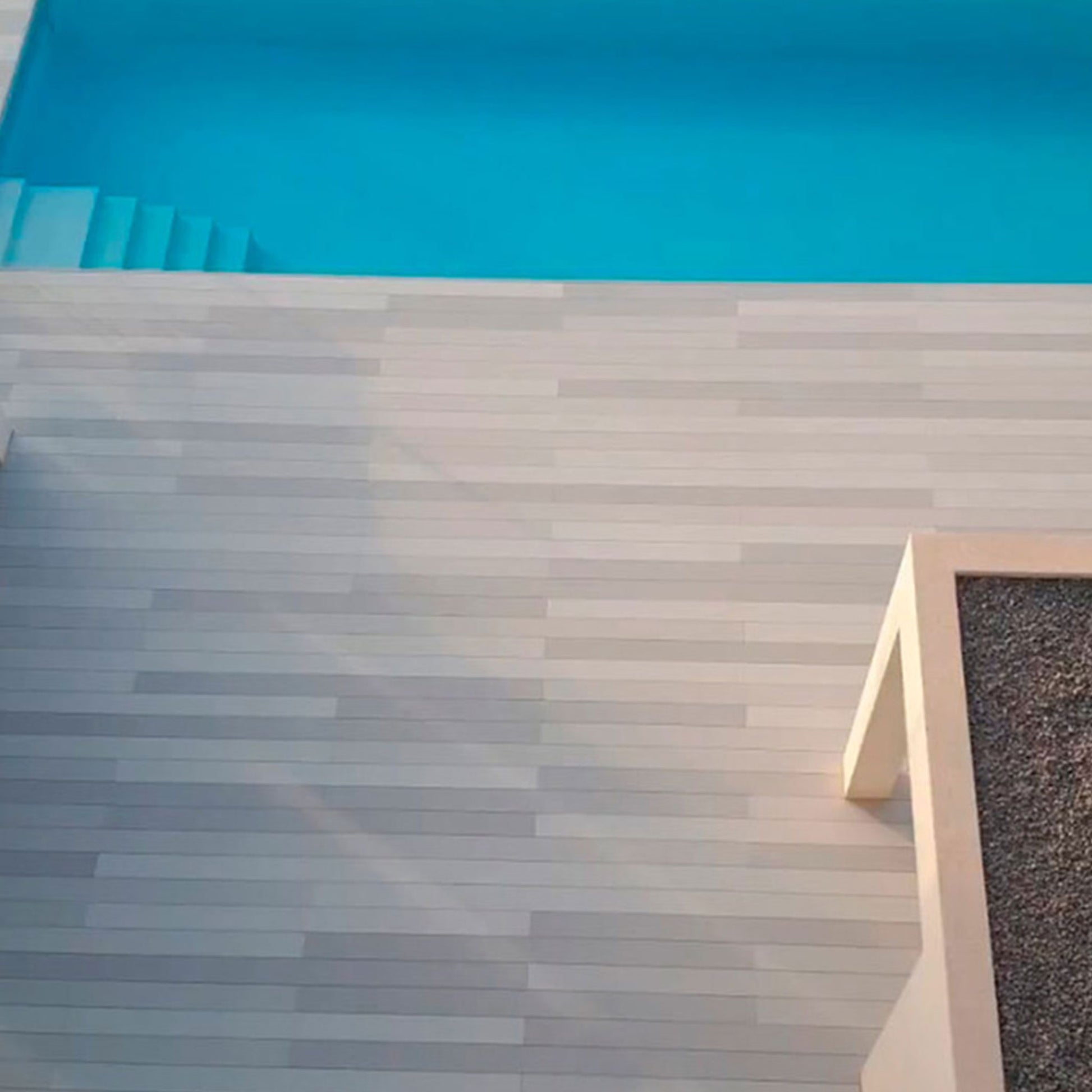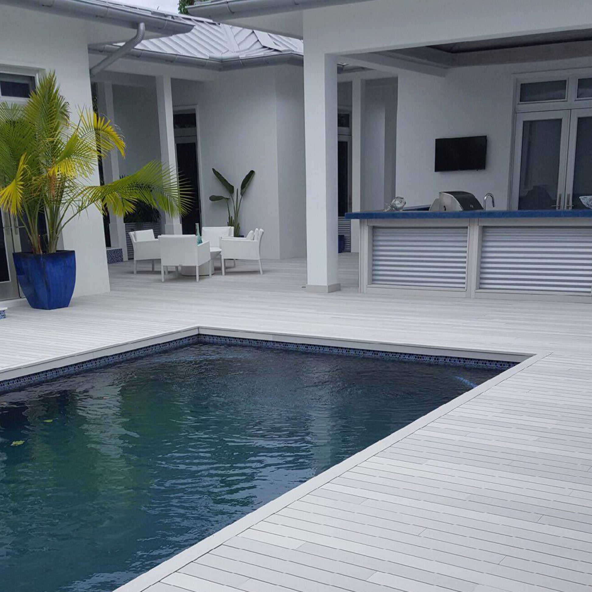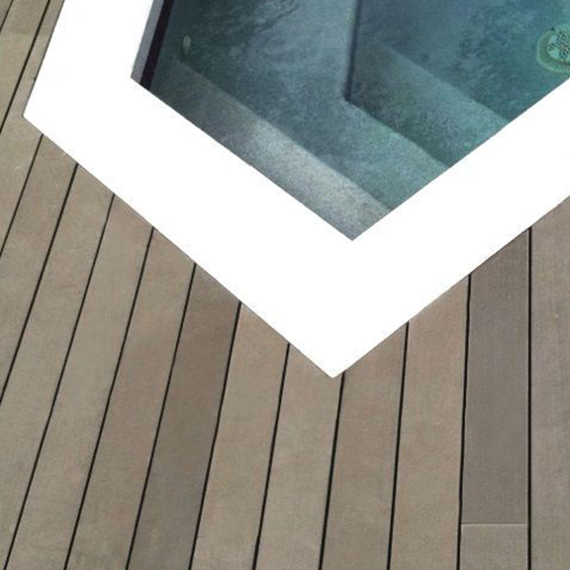 Esthec is virtually indestructible and is not affected by warping, bending, fading or other commonly associated wear and tear signs of outdoor decks. With a very low expansion rate, this decking design system is virtually unaffected by extreme temperatures. The material is highly wear-resistant and provides excellent slip resistance, in both wet and dry conditions, making it an ideal material for use with water features. There are 9 beautiful, pigmented color finishes in the line all with a subtle blend of shades within each color. Our decking consists of planks and end planks, held together with a proprietary system of clips and fasteners, offering great versatility in design and application on both horizontal and vertical surfaces.