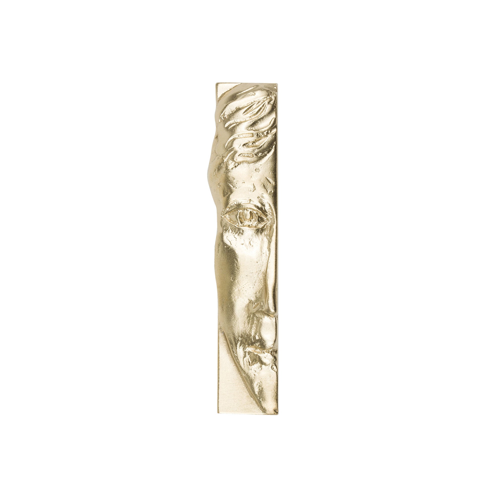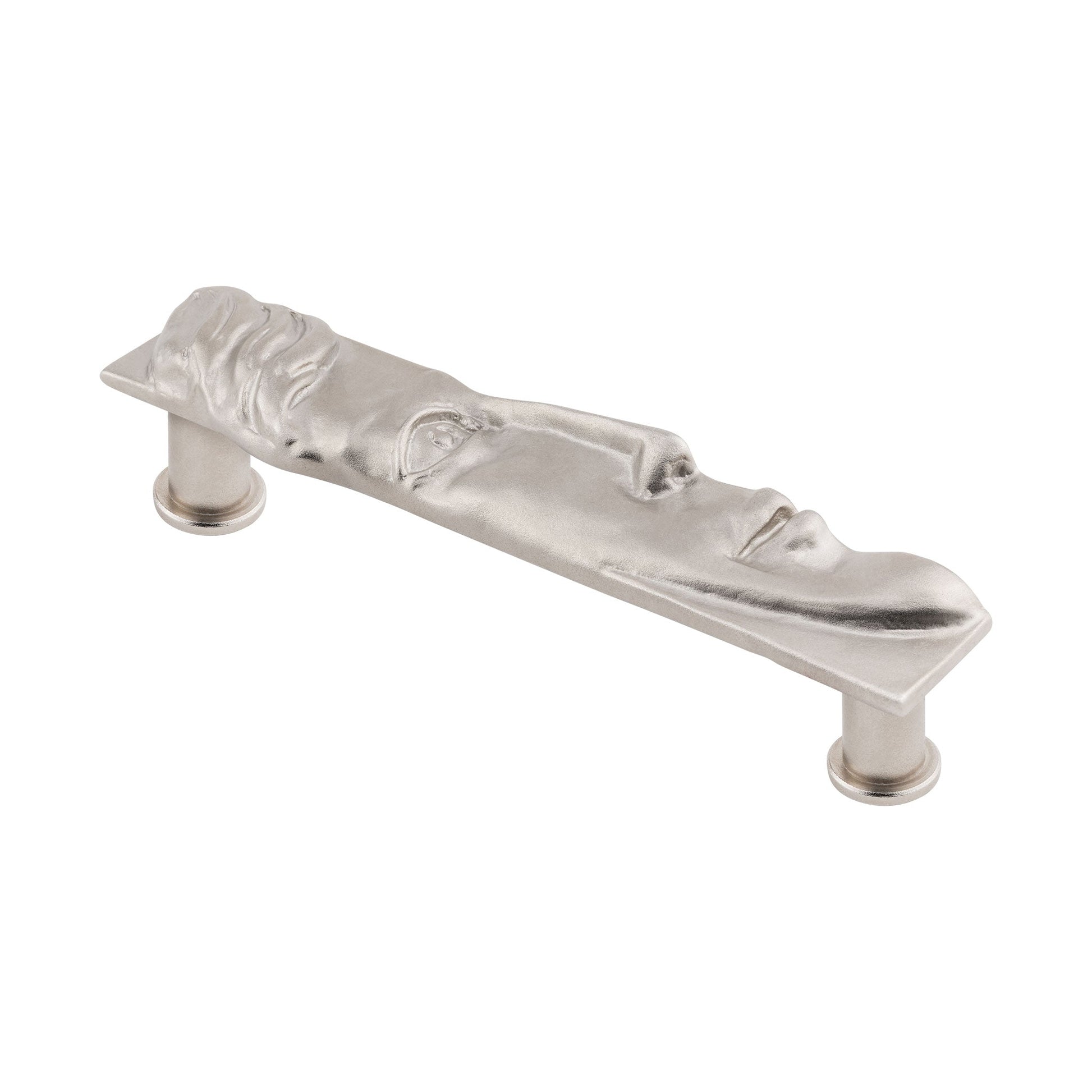 The He small pull handle follows the form of the human face and is surely an avant-garde solution for any unconventional space. Artistic by nature, this piece will be a standout on both full-sized cabinet doors as well as drawers, cabinets and furniture items. Available in left and right versions in three sizes.