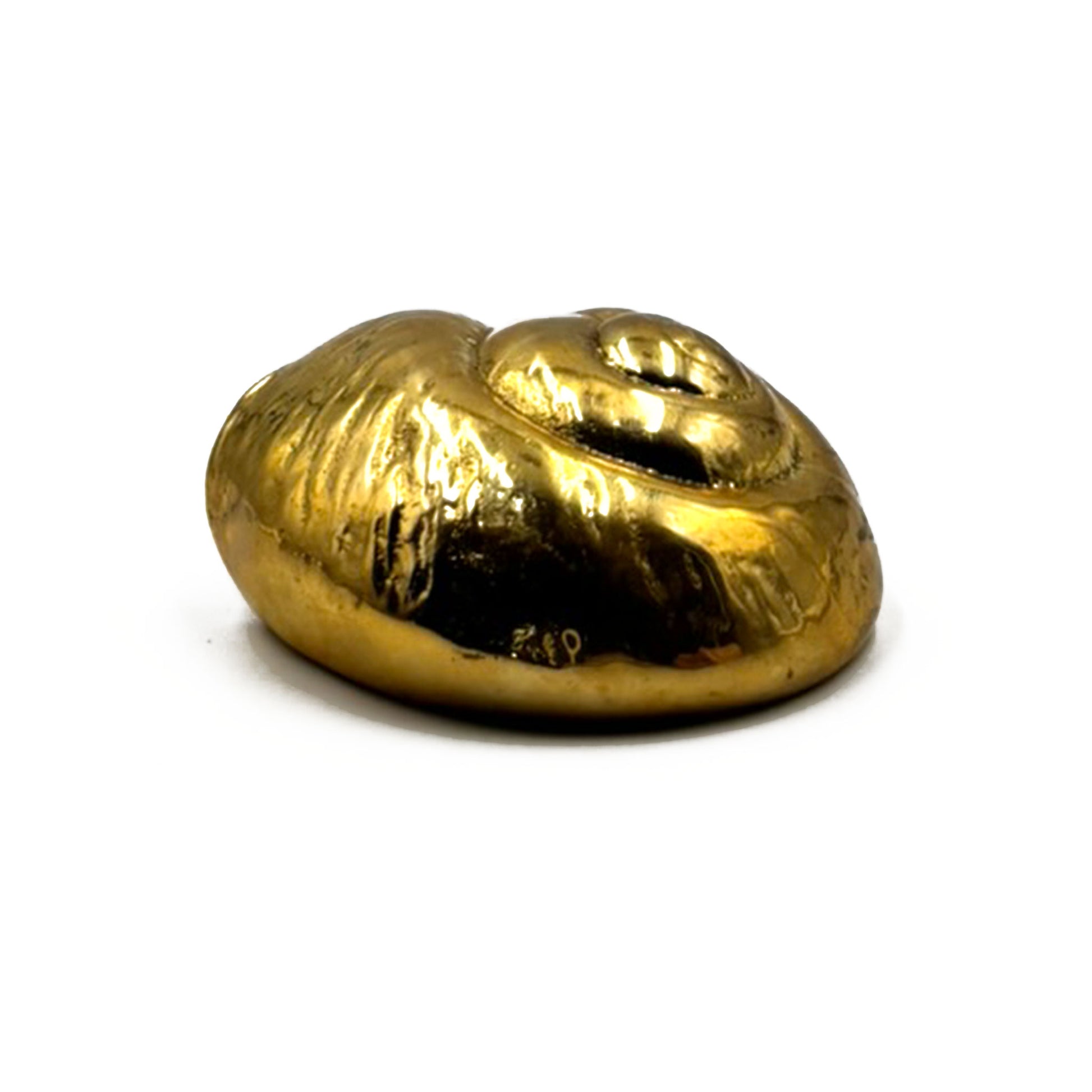 The Shell cup pull handle resembles a snail shell. The 100% recycled brass object was carved by hand and made using traditional casting technology and is perfectly suited for coastal/beach and avant-garde interiors. Artistic by nature, this piece will be a standout on both drawers, cabinets and furniture. Perfect as a unique conversation piece in a bar or powder room.
