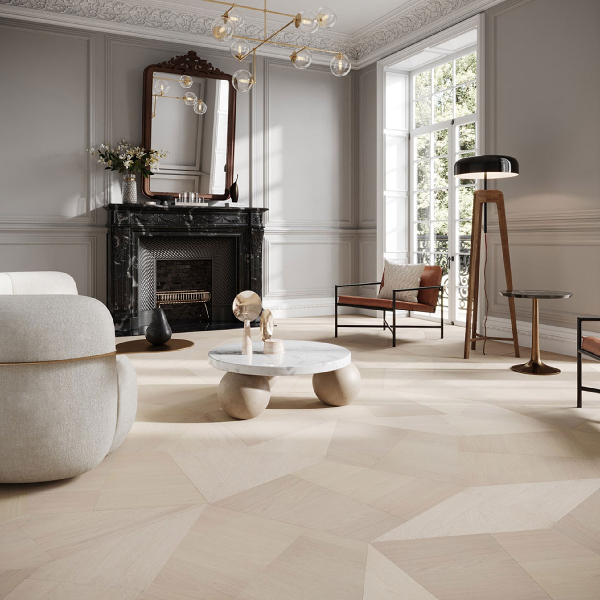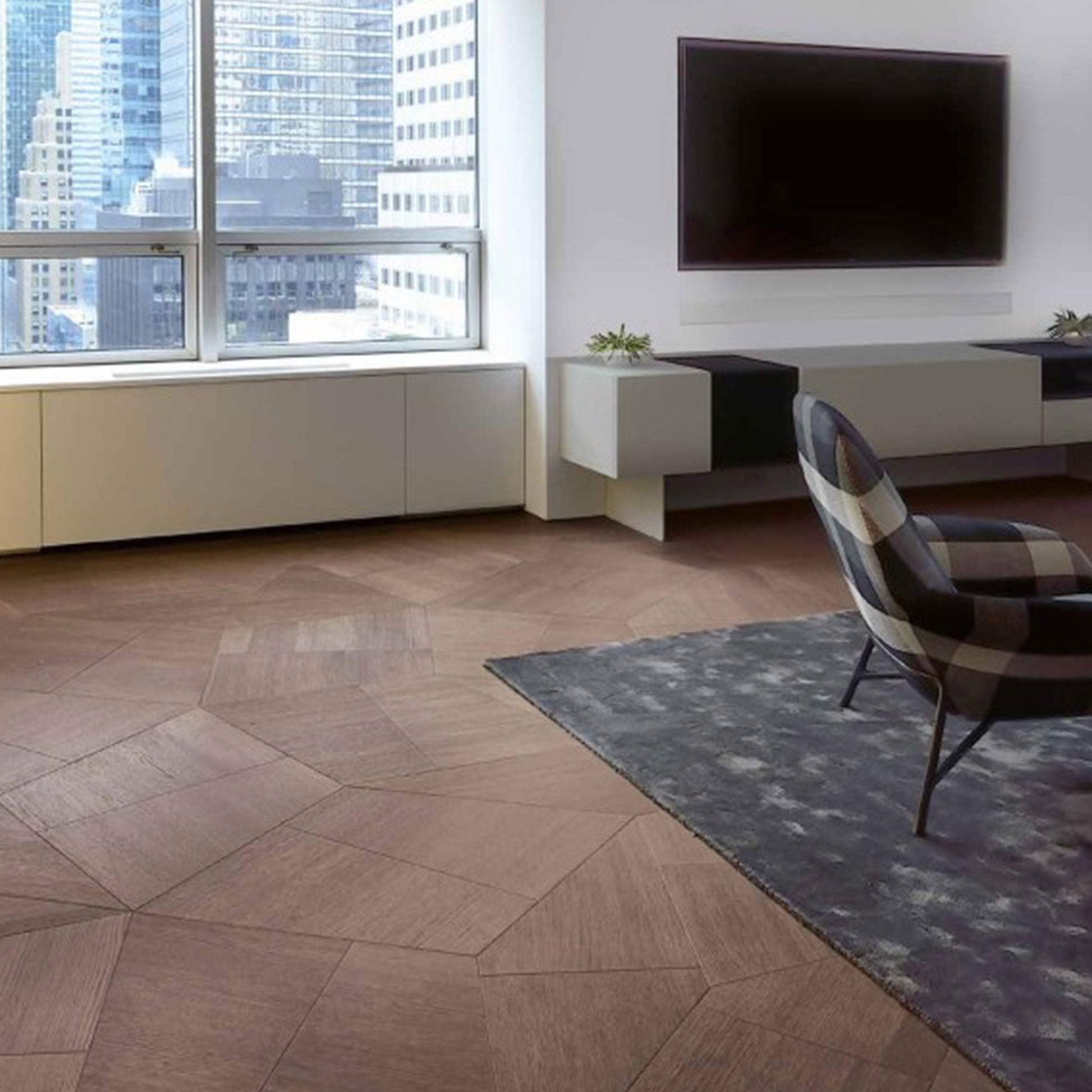 Designed by Lago's art director Daniele Lago, the Natural Genius "Slide" collection is based on transitional geometric shapes. A rectangle transforms into a diamond shape, then it rotates, slides and transforms into endless patterns. Natural Genius hardwood parquet is suitable for floors, as wall paneling and as cladding for a multitude of other surfaces. Please note that the Slide collection requires a CAD/ dwg. file submittal of the installation area dimensions to quote the project.